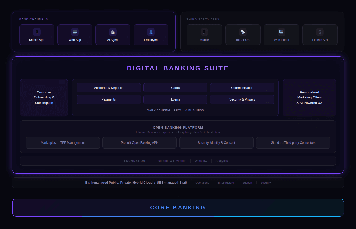 The Digital Banking Suite enabled financial institutions to rapidly deploy end-to-end digital banking services across retail and SME customer engagement, core banking workflows and integrations.